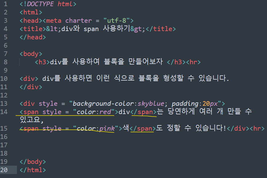 이 글에서 <span>을 사용해 볼까요