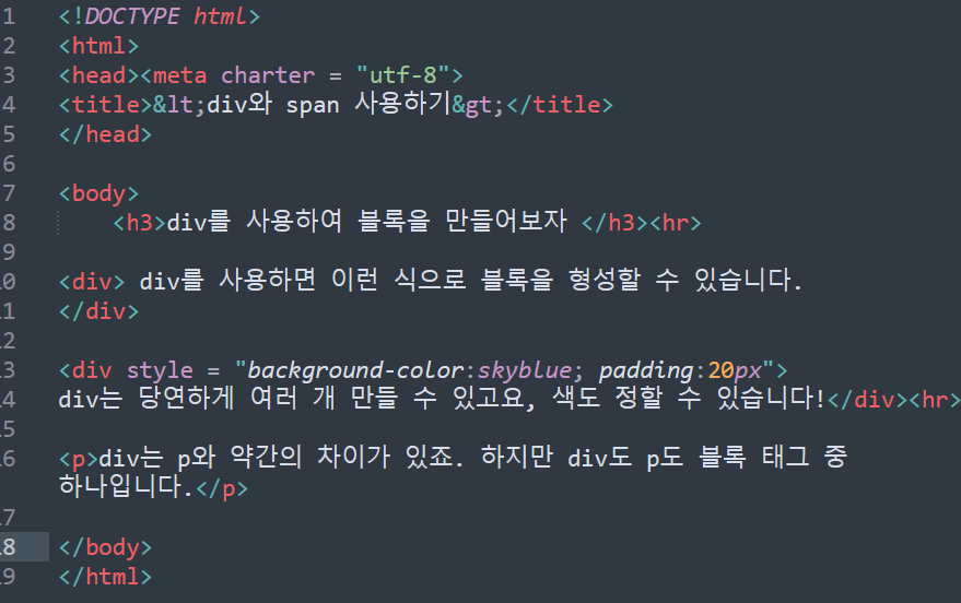 가장 많이 쓰는 <div> 와 <span>으로 예시를 들어드리겠습니다.